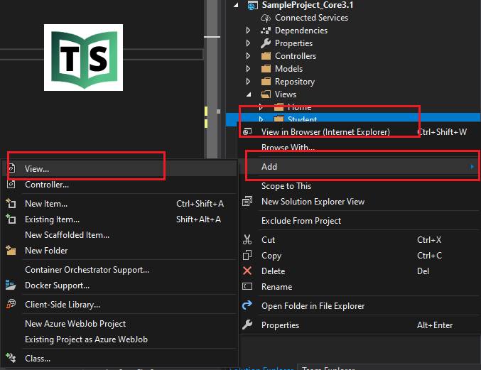 Now Right-click on the Student folder and select Add => View